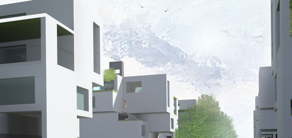 Zástavba parcel, označených 3.1, 3.2, 3.3, je tvořena polouzavřenými bloky bytových domů, vytvářející řadovou zástavbu. Domy při komunikaci s obchodní částí jsou pětipodlažní a otevírají se směrem do klidných dvorů.