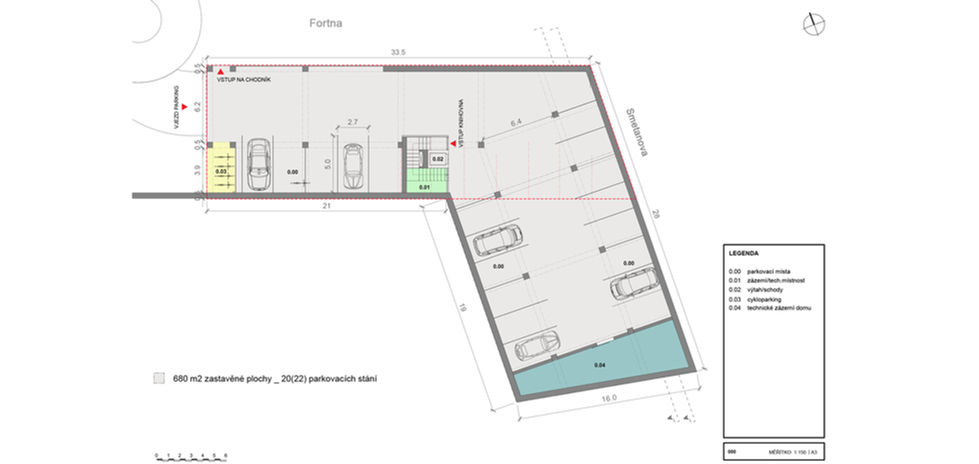 stěnovými pilíři, tvoří krytý převážně venkovní prostor, tento krytý parter bude sloužit jako vstup do objektu a parking.